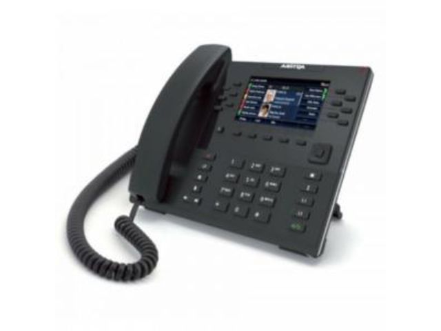 Aastra 6869I Aastra 6869i offre un grand écran couleur LCD rétro-éclairé, 12 touches programmables, 5 touches contextuelles et un support pour casque.La qualité audio du poste est exceptionnelle grâce à un son HD que ce soit avec le combiné ou le haut parleur. L'écran couleur LCD rétroéclairé offre une riche présentation visuelle permettant une facilité d'utilisation. Il intègre une interface intuitive et de nombreuses fonctionnalités de téléphonie.Caractéristiques techniques de l'Aastra 6869IEcran couleur 4.3" TFT2 ports GigE Eternet (LAN/PC)Des touches physiques2 touches de ligne avec LEDsJusqu'à 12 lignes avec LEDsPavé de navigation avec touche centrale Select/OK12 touches softkeys programmables avec LEDs (jusqu'à 20 fonctions)5 touches softkeys systèmes contextuelles (jusqu'à 18 fonctions)Haut parleur et combiné HD large bandeSupport casqueOrientation selon deux angles (35° et 60°) grâce au pied reversibleMontage muralSupport module d'extension de touchesSupport module calver alphabétiquePort USB 2.0 Type-A