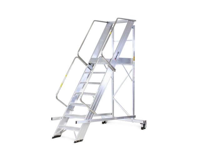 L'échelle mobile permet l'accès et les interventions rapides sur le dôme des citernes en toute sécurité. Elle sécurise l'opérateur lors du travail en hauteur. Elle se déplace aisément au moyen d'un timon de manœuvre (système breveté). Ce système joue également le rôle de barrière de sécurité en interdisant l'accès à l'échelle si l'ensemble n'est pas sur ses appuis fixes. Sur le sommet de la citerne, l'encorbellement autour de la zone de travail garantit la sécurité maximale de l'opérateur lors de ses interventions. Certifiée TÜV.