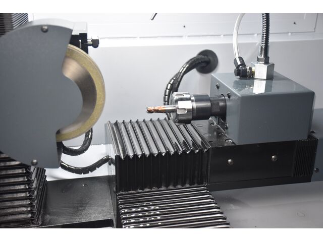 Broche de haute précision et meule : Broche motorisée avec une meule CBN ou SDC spécialisée pour les angles de pointe, hélice, dégagement ou dépouille spécifiques