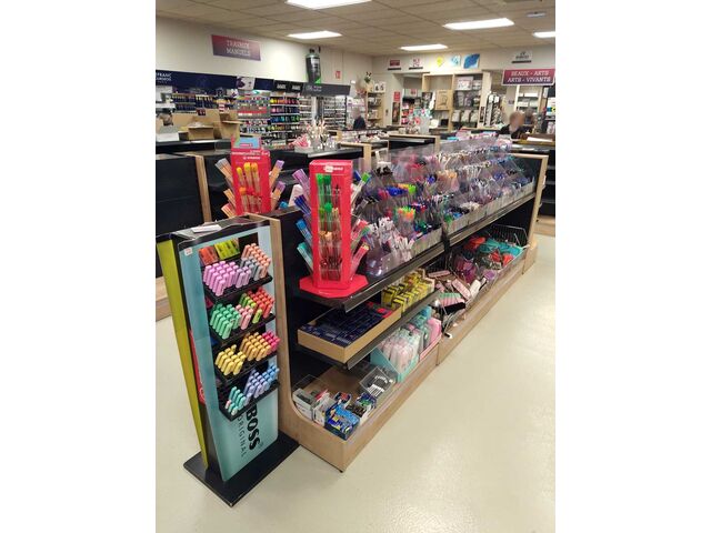 Tilt' Équipement accompagne les gérants de papeterie dans l'agencement de leur magasin. Grâce à la gondole SR l'évolutif en stock permanent, il est possible d'aménager les petites et grandes surfaces de vente très rapidement. Ce mobilier métallique très qualitatif et robuste peut accueillir tout type de produits valorisant des gammes variées de produits.