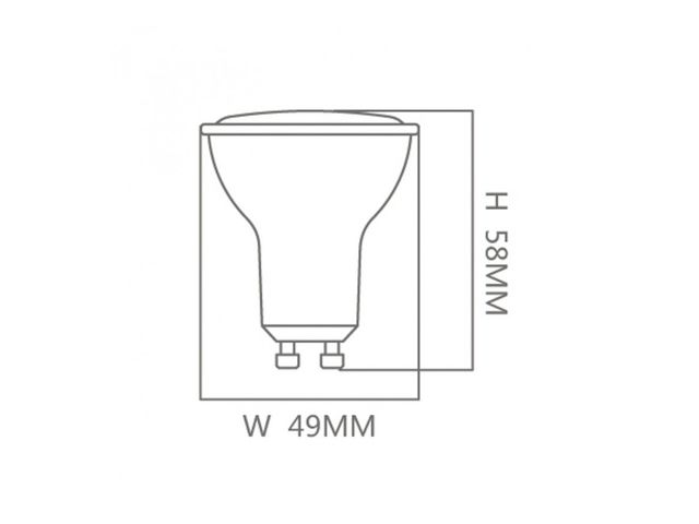 Référence : GU7504 Dimensions : Ø49x58 mm Puissance : 6 W Intensité lumineuse : 516 lm Durée de vie : 25 000 heures Indice de rendu des couleurs (IRC) : 80 Température de couleur : 3000K, 4000K, 6000K Indice de protection : IP20
