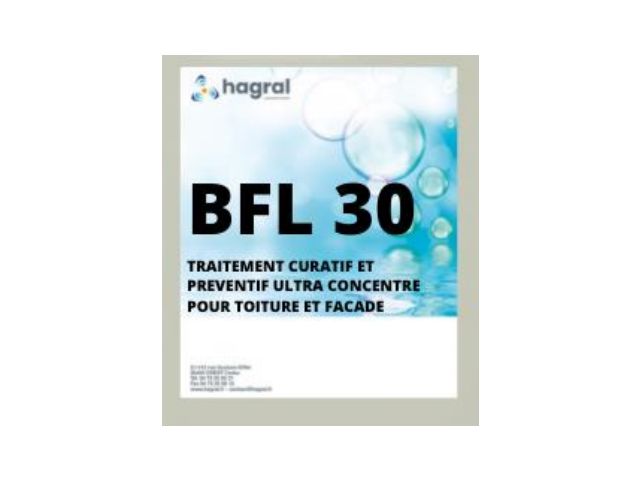 Le BFL 30 est un traitement biocide anti-algues et dépôts verts concentré, idéal pour protéger la toiture et la façade contre les moisissures et les bactéries. A la fois curatif et préventif, il est d'une utilisation facile et efficace, s'adaptant à plusieurs surfaces allant de la toiture aux jardins.