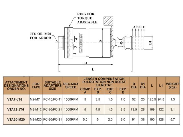 Conseil: modèle sans cône morse. Pour le choix du cône morse adapté à votre machine, voir les arbres CM avec connexion JT6. Les pinces flexibles en caoutchouc pour taraudeuses sont disponibles séparément.
