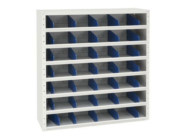 Armoire à compartiments, matériau: acier, hauteur hors tout: 1980 mm, largeur hors tout: 1000 mm, profondeur hors tout: 300 mm, charge maxi: 600 kg, structure coloris: bleu, nb de tablettes: 12, nb de tiroirs: 0, ral: 5009, livré monté: oui, charge maxi par tablette: 50 kg, lean management: oui, emballage recyclable: oui - 100 %, emballage recyclé: 100 %, produit recyclable: oui - 100 %, produit recyclé: 20 %, poids du produit: 55.3 kg, type de produit: armoire haute