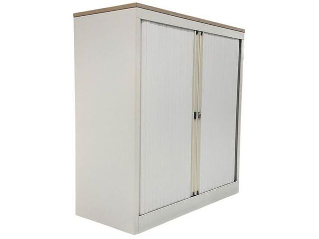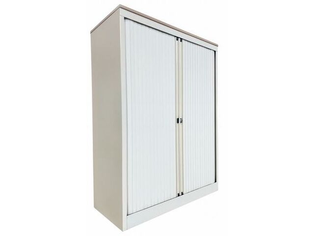 Armoire Basse Reconditionnée – Ouverture À Rideaux - Blanche de la marque MANUTAN