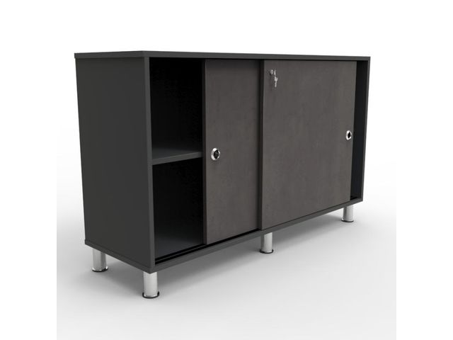 Dimensions: 83 cm (hauteur) x 135 cm (longueur) x 40 cm (largeur)Poids: 51.5 kgMatériaux: panneaux mélaminés de 19mm, chants ABS 2mmFinitions: blanc, béton foncé et chêneFermeture: à cléPortes: coulissantesEmpilable: ouiLivrée en kit: oui