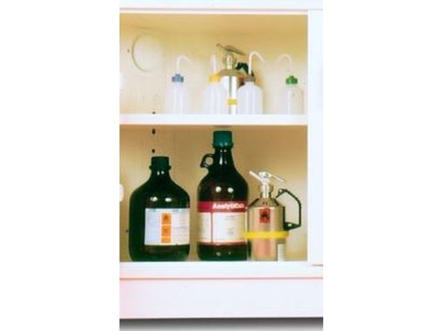 1. Construction durable et conforme : L'armoire est fabriquée en acier 15/10ème avec une double paroi et une isolation en fibre minérale de 20 mm, suivant les normes strictes DIN 4102 ISO 9001. Ceci lui confère une grande robustesse et garantit une sécurité optimale pour le stockage des solvants.