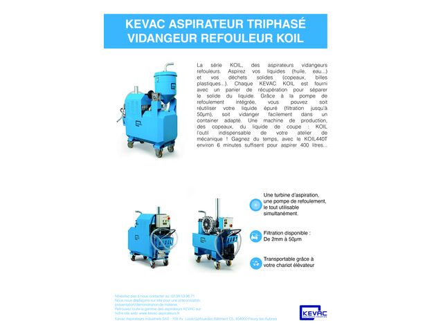 Conforme aux standards de qualité KEVAC, ce modèle garantit une aspiration fiable et continue, même en usage intensif. Sa conception robuste et modulaire, son système de filtration optimisé et sa compatibilité avec les environnements industriels contraints en font une solution technique durable et parfaitement adaptée aux exigences de production