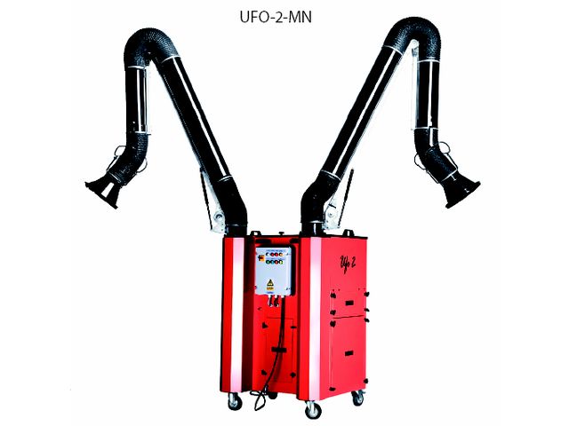 Mode de fonctionnement : Extraction de fumées, gaz et poussièresApplication : Soudure, meulage, ponçage, découpe des métaux par plasmaFiltration : Pré-filtre pare-étincelles et filtre en polyester téflonéNettoyage : Système pneumatique de décolmatage automatiqueVersions disponibles : Mobile (UFO-1-MN, UFO-2-MN) / Fixe (UFO-1-HN, UFO-2-HN)Volume d'aspiration : 1500 m3/h (UFO-1), 3000 m3/h (UFO-2)Puissance : 1.1 kW (UFO-1), 2.2 kW (UFO-2)Poids : 160 kg (UFO-1-MN), 209 kg (UFO-2-MN)