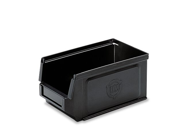 “ Bac a bec antistatique 170x102x77 mm. Empilable, gerbable. Bac ultra résistant en polypropylène. Adapté pour les composants électroniques. Coloris noir ”