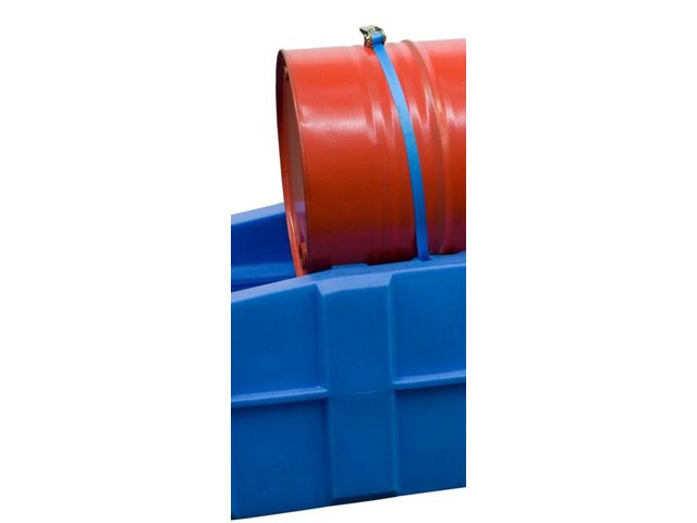 2. Manipulation facilitée : Grâce à ses deux roues et à sa roulette avec frein, ce bac de rétention est facilement manœuvrable, simplifiant ainsi son transport et sa manutention. De plus, ses deux sangles permettent de garantir une sécurité optimale lors du basculement d'un fût de 200 litres debout à un fût couché, et inversement.