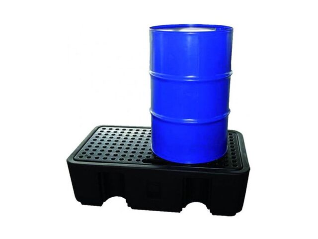 Bac de rétention DRUM 240/2 et caillebotis en polyéthylène. Ce bac de rétention convient pour utilisation avec 2 fûts de 220 litres. Le stockage sécurisé de produits dangereux est important pour chaque entreprise car les produits chimiques et/ou toxiques nécessitent des précautions particulières pour la manipulation ou le stockage. Haute résistance garantie : Bac et caillebotis en polyéthylène avec bonne résistance chimique à de nombreux acides et bases. Caillebotis amovible. Résistant aux chocs. Passage de fourches pour chariot élévateur. Passage transpalette. Bac empilable sans caillebotis.