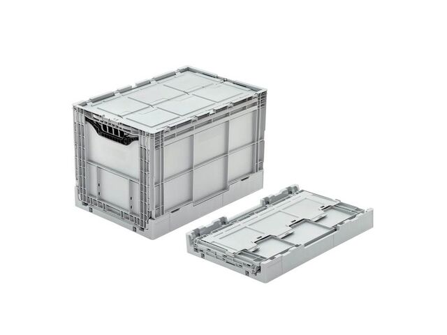 “ Bac pliable avec couvercle, plein en polypropylène gerbable 600 x 400 mm. Conforme à la norme Europe. Fond & parois pleins, avec couvercle et poignées déployables. Volume du bac plastique : 41, 42, 52, 61, 62, 80 ou 83 L selon modèle. Cinq hauteurs [...] ”