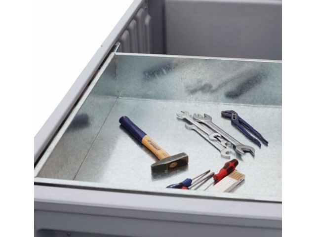 1. Robustesse et Durabilité : De par sa construction métallique, le Bac outillage en métal CEMBOX 750 est non seulement résistant aux chocs mais également à l'usure. Prolongeant ainsi sa durée de vie d'utilisation et renforçant sa solidité pour supporter des charges maximales jusqu'à 400 kg.