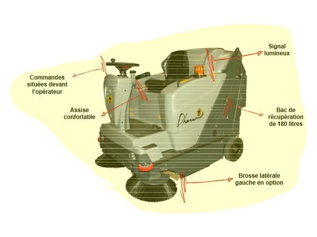 4. Sécurité et confort d'utilisation : La balayeuse inclut des dispositifs de sécurité comme un frein de service et de stationnement, un compteur, un klaxon et un gyrophare. Ces éléments assurent non seulement la fiabilité de l'équipement, mais aussi la protection de ses utilisateurs en toute situation.