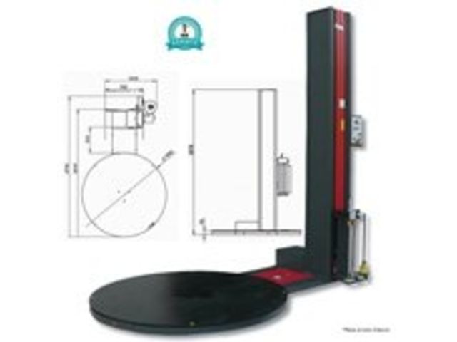 Composée d’une colonne rabattable, cette banderoleuse est dotée d’un plateau tournant de 1650 mm de diamètre, d'un chariot porte-bobine motorisé latéral avec variateur, d'un dispositif de sécurité anti-écrasement à la base du chariot, d'un frein mécanique…