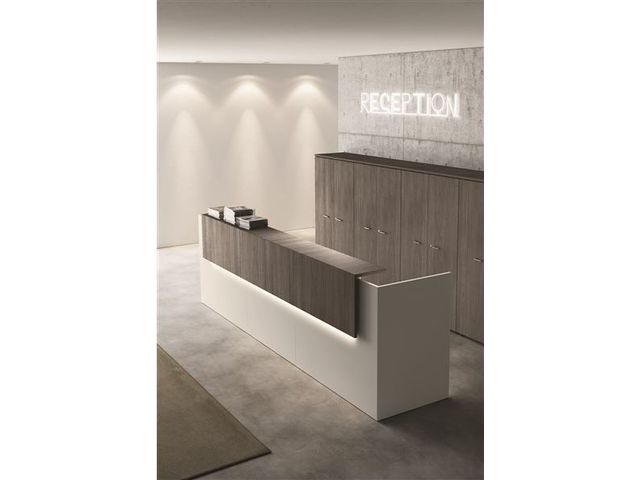 2. La Banque d'accueil Point est hautement adaptable à vos besoins spécifiques. Ses nombreuses possibilités de configurations - en termes de formes et dimensions - lui permettent de parfaitement s'intégrer dans votre espace d'accueil quelle que soit la taille ou l'agencement de la pièce.