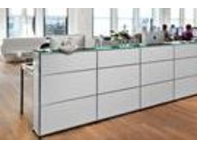 1. Design modulaire : La banque d'accueil USM est constituée de modules interchangeables, permettant une personnalisation selon les besoins spécifiques de chaque espace professionnel.