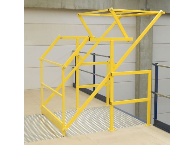 La barrière écluse s'installe sur une mezzanine ou un stockage en étage en industrie ou entrepôt logistique. Ce sas à palette permet de ne pas rompre la sécurité des gardes-corps lors de la manutention des palettes.