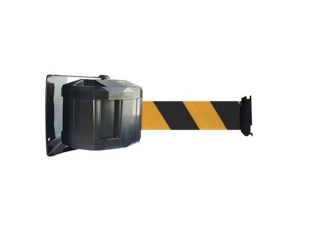 Pour une utilisation optimale, fixez fermement le boîtier au mur à l'aide des fixations appropriées (non incluses). Déployez la sangle en la tirant doucement jusqu'à la longueur désirée et engagez-la dans le récepteur mural opposé (vendu séparément ou intégré dans un système complet). Pour la rétracter, déclenchez simplement le mécanisme de freinage et laissez la sangle se rembobiner en douceur dans le boîtier. Le coloris noir et jaune de la sangle est pensé pour une signalisation claire et immédiate. Assurez-vous que la sangle est bien tendue pour une délimitation efficace.
