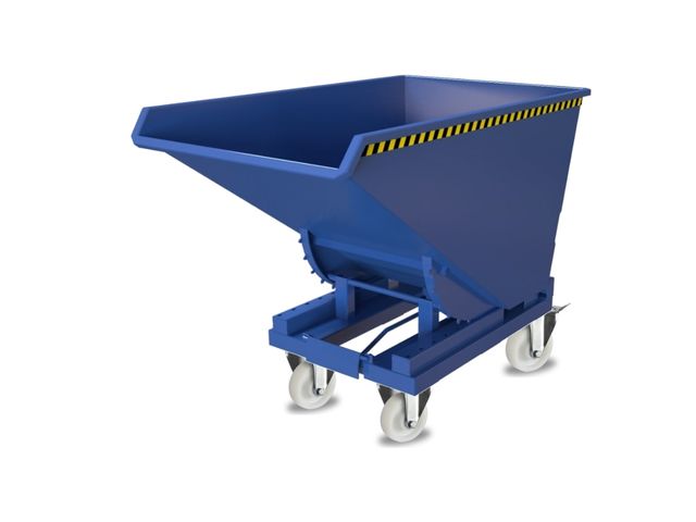 Disponible en plusieurs tailles et coloris, la benne à basculement et retour automatique est indiquée pour la manutention et le déversement des déchets.