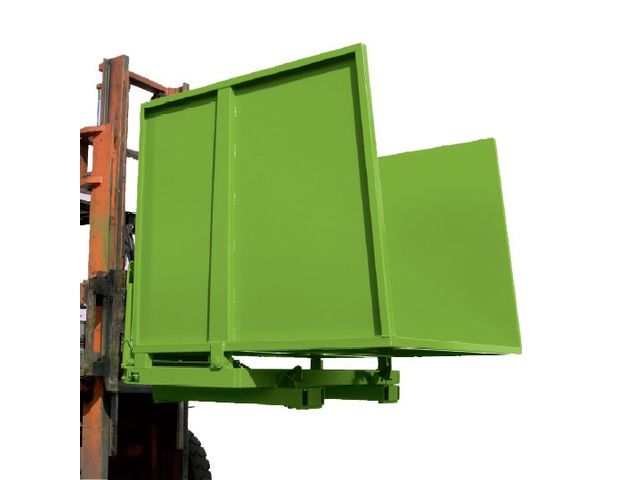 Cette benne de déchets dispose de passages de fourche facilitant son transport par un chariot élévateur.