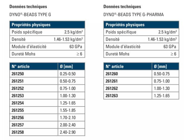Utilisation: Série de machines DYNO®-MILL KD/ DYNO®-MILL UBM / DYNO®-MILL CIP/SIPPolyvalence : Utilisation possible avec tout autre matériel nécessitant des éléments de broyageDomaines d’application: Agroalimentaire, Désintégration de cellules, Produits phytosanitairesTaille: 0.25-2.90mmMatériau: Verre