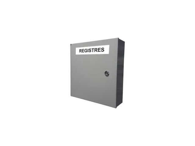 Boite à registre en métal avec fermeture clé pompier afin de securiser vos registres. Couleur rouge ou gris selon arrivage.