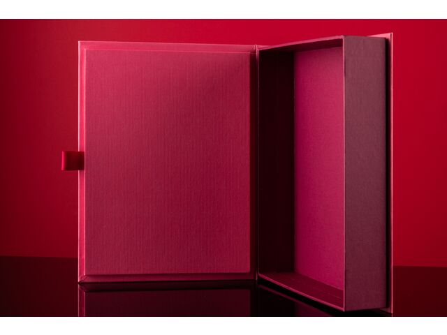 Type : Boîte "livre"Concepteur : REBECCA DEVANEY (USA)Matériau : Carton de 2mm d'épaisseurHabillage : Papier de création texturé imprimé en quadriOuverture : Tirette ruban mise à la teintePersonnalisation : Papier imprimé aux couleurs de la marqueUsage : Sur mesure pour lancement de produits, éditions anniversaire, communication corporate, événements, salons ou expositionsProcessus : Prise en charge complète de la conception à la livraison