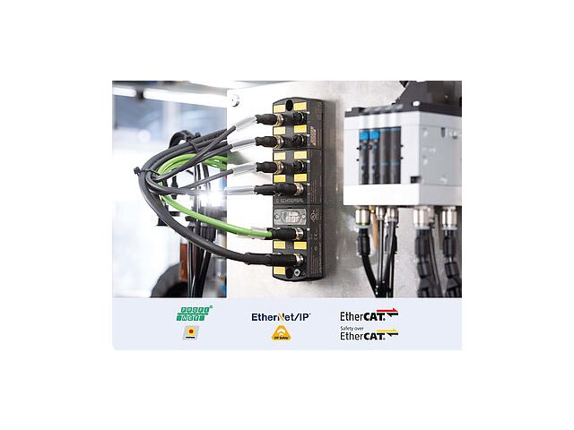 “ ■ Raccordements universels de dispositifs 8 pôles ■ Installation simple et sans risque d'erreurs ■ Câblage machines économique ■ Installation rapide par Plug & Play ■ 8 dispositifs de sécurité différents raccordables ■ 4 boîtiers de commande avec arrêt d'urgence raccordables ■ Alimentation via connecteur d'alimentation M12 –10 A ■ Communication sûre via PROFINET / PROFIsafe ■ Pour tous vos bus de terrain ”
