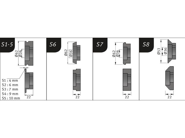 Conseil: Autres molettes disponibles en option E1 à E8. Épaisseurs de tôles spécifiées pour 400 N/mm²