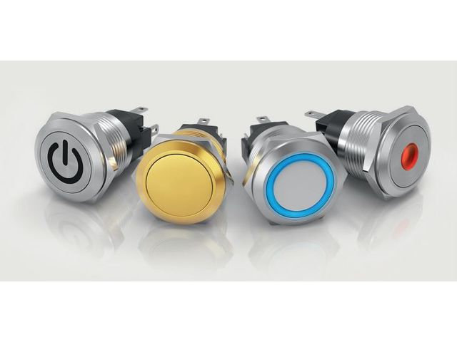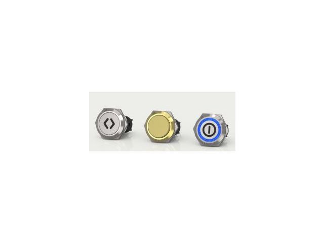 Versions disponibles : Contact momentané ou maintenuÉclairage : LED simple ou bi-colore, point central ou anneauNormes : Résistance aux chocs IK10, étanchéité IP67Matériaux : Inox chromé, laiton doré, aluminium anodisé naturelDurée de vie mécanique :supérieur à 1 million de cycles de commutationTension d'isolation nominale : 250 VACTempérature de fonctionnement : -30 °C à +70 °CDimensions : Ø 16 mm, Ø 19 mm, Ø 22 mm