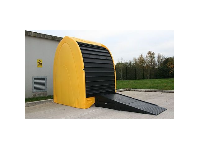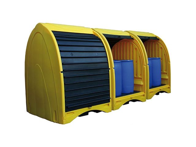 “ Départ 5 à 10 jours Box de rétention en PE pour le stockage de 2 ou 4 fûts à la verticale Chargement facilité grâce à ses 2 portes coulissantes Capacité de rétention allant de 250 à 485 litres selon modèle ”