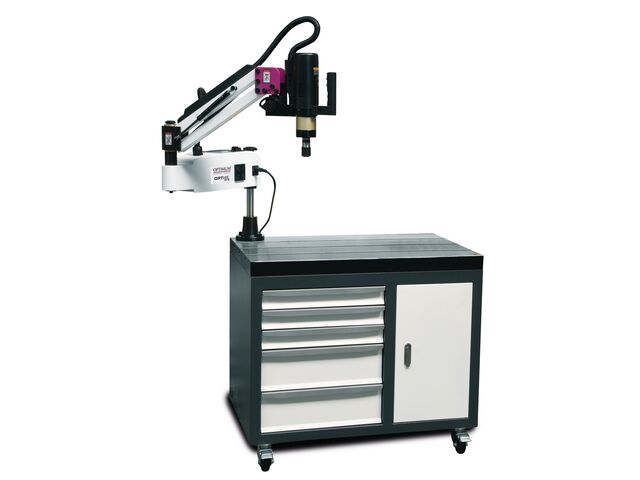 Bras de taraudage électrique M3 à M16 écran tactile PLC servo 0,6 kW 230 V portée effective 1045 mm avec 8 douilles ø19 mm Optidrill DG16 - produit présenté par TORROS