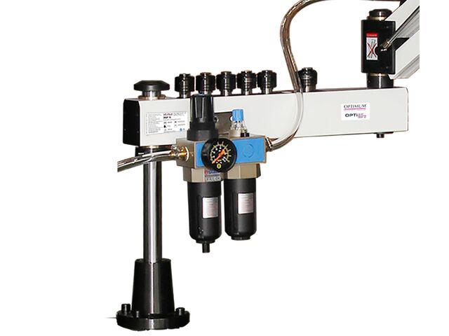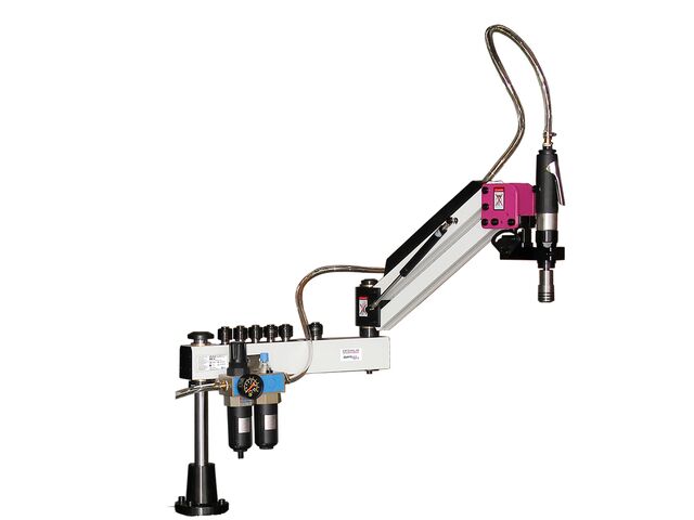 Bras de taraudage pneumatique de M3 à M16 250 tpm 6 bars portée effective 877 mm avec 8 douilles de taraudage ø19 mm Optidrill DGP16 - produit présenté par TORROS
