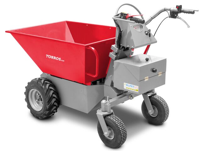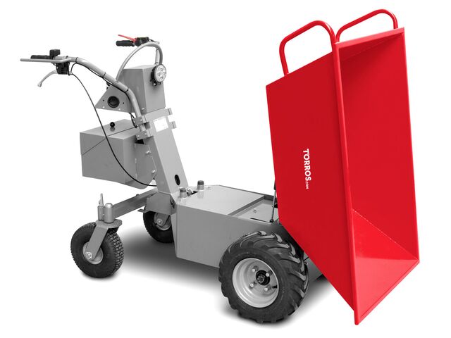 Brouette électrique 500 kg avec benne à vérin à gaz.