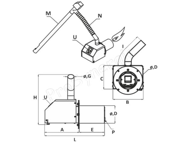 Brûleur à granulés Ø6-8 mm Pell Eco 35 KW régulateur intégrée avec Vis sans fin d´alimentation - produit présenté par PROSYNERGIE