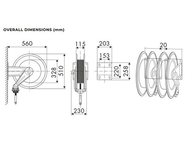 Enrouleur d'eau chaude 20 m Ø 1/2 100 bars acier peint avec enroulement automatique et support mural pivotant Raasm RA.8530.201 - Enrouleurs de tuyaux