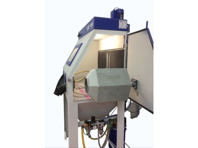 Cette cabine de sablage à dépression Laborex représente la solution idéale pour le traitement de surface automatisé de petites pièces produites en série. Grâce à l'intégration d'un trommel rotatif, elle permet un sablage ou un microbillage homogène de l'ensemble de votre vrac sans intervention manuelle constante, garantissant une productivité élevée et une finition constante.