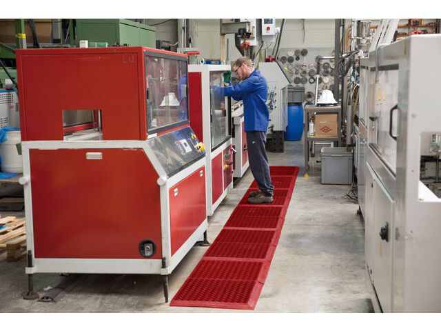 “ - Supprime l’effet de talonnage grâce au système de coussin d’air et l’épaisseur du tapis - Diminue l’effet « jambes lourdes » - Evacuation des liquides facilitée (produit ajouré et surelevé) - Pas de déformation ni d’affaissement (résilience du matériau) - Bonne adhérence au sol - Modulable : s’adapte à toutes les configurations d’ateliers et de machines avec les clips de fixation (inclus) - Une version antibactérienne (99,99% des bactéries détruites E. Coli, Staphylocoque …) ”