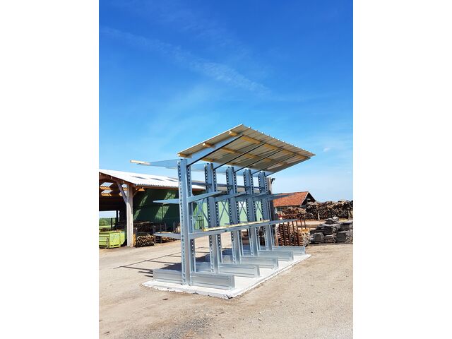 Pour une utilisation extérieure optimale, le cantilever peut être équipé d’une toiture de protection et d'un bardage arrière. Cette option permet de protéger efficacement les marchandises des intempéries (pluie, neige, soleil), garantissant ainsi leur durabilité et leur qualité dans le temps. La toiture est conçue pour s’intégrer parfaitement à la structure, sans compromettre l’accessibilité ni la capacité de stockage.
