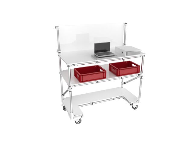 Conception ergonomique et sécuriséeLes bords arrondis du plan de travail et du niveau de stockage garantissent un espace de travail sûr, réduisant les risques d’accidents et les dommages lors des manipulations.