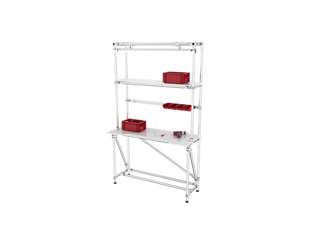 La Table de travail avec lumière LED, stockage et rail porte boîte à bec est conçue pour améliorer la productivité, optimiser l’organisation et offrir un espace de travail fiable et ergonomique, adapté aux environnements industriels, logistiques et ateliers.