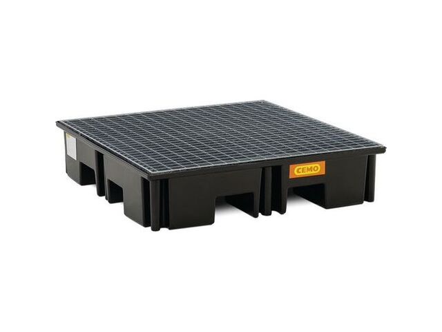 Protégez l'environnement et assurez la conformité de vos opérations avec le bac de rétention Cemo PALETTE-PE 220/4, spécialement conçu pour les palettes et les fûts. Ce bac robuste en polyéthylène noir, doté d'une capacité de rétention de 220 litres, est idéal pour stocker jusqu'à 4 fûts, garantissant une sécurité maximale contre les déversements accidentels de liquides dangereux. Sa conception intelligente intègre un caillebotis en acier galvanisé amovible, qui maintient les fûts en hauteur pour faciliter le nettoyage et la manipulation, tout en assurant une excellente stabilité.