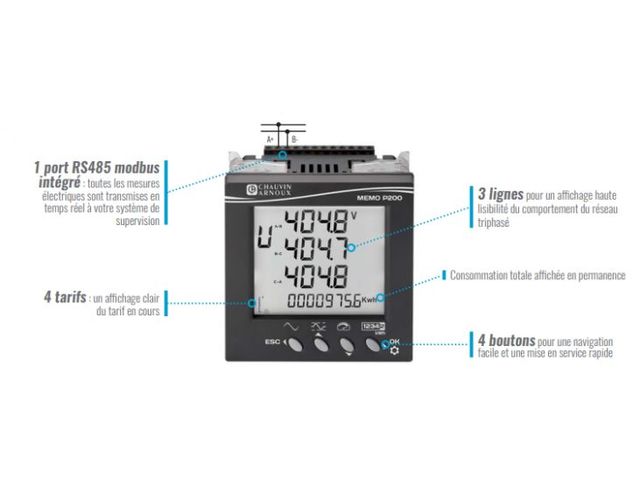 RS485 modbus intégré et gestion de 4 tarifs