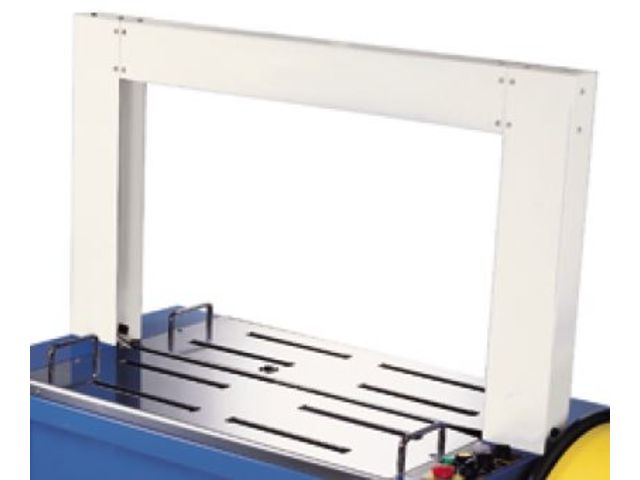 Cette machine à cercler comporte un tunnel de dimensions 850x600mm et un mandrin bobine de diamètre variant de 200 à 280mm.
