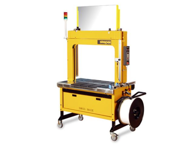 Les machines tête sur le côté existent en 2 versions : avec épée pour cerclage de palettes, et sans épée pour les box ou les charges sans palette.