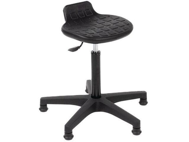 Matériau de l'assise et du plan de travail : Plastique polypropylène Couleur : Noir Structure : Acier avec tubes en carbone Roues : 4 Plan de travail : Translatable Norme : Américaine BIFM Hauteur de l'assise : 450 mm Poids net : 16 kg