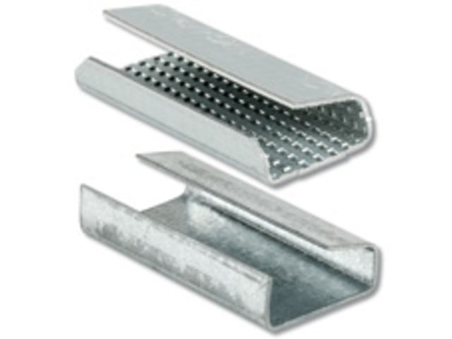 La chape acier semi ouverte est idéale pour le sertissage de qualité des feuillards polypropylène et polyester de 12 mm et 16 mm de largeur.
