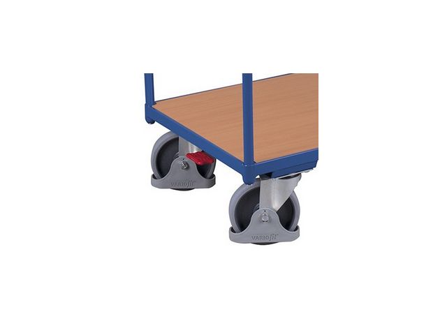 4. Maniabilité et confort d'utilisation : Le chariot est doté de roues à bandage en caoutchouc thermoplastique gris anti-trace, qui sont à la fois silencieuses et n'endommagent pas le sol. De plus, grâce à ses roulements à billes de précision, le chariot offre un déplacement fluide et sans effort. Sa combinaison de deux roulettes pivotantes avec frein et deux roulettes fixes assure une maniabilité optimale dans tous les contextes.
